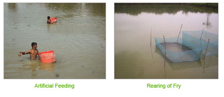 Fish culture was not a prevailing enterprise in the district and counted number of organized fish ponds were available for rearing of Indian major carps up to mid 70,s.KVK has started its fisheries unit in the year 1980-81 and emphasizes on composite fish culture rather than rearing of Indian carps only. In the beginning need based training courses of 2 to 12 days have been organized both at “off-campus” and” on – campus.” The technologies related to composite fish culture were also demonstrated under “Lab to Land programme” in selected villages viz. Bhain, Tihra, Meharban ka purwa Mahilo Asapur and Balramau etc. The farmers of these villages were harvesting 3,500 to 4,000 kg. fishes per ha. per year with a net income of Rs 35,000 to 45,000 per ha per year. Encouraged with the results, other farmers and rural youth have taken keen interest in fish rearing and processing for getting old ponds on lease which are mainly under the ownership of village panchayats, In the mean time, KVK has also introduces exotic carps like. Common carp, silver carp and grass carp in the district. Now the composite fish culture became popular among the farmers to get maximum return instead of rearing Indian carps only. With the wide range adoption of fish culture in the district, the demand for fingerlings have been increased many folds. During the year 1998 about 125.55 lacs fingerlings of Indian and exotic carps were stocked against 20 lacs fingerlings in the year 1985-86. During year 1986-2015 numbers goes to 325 lacs.